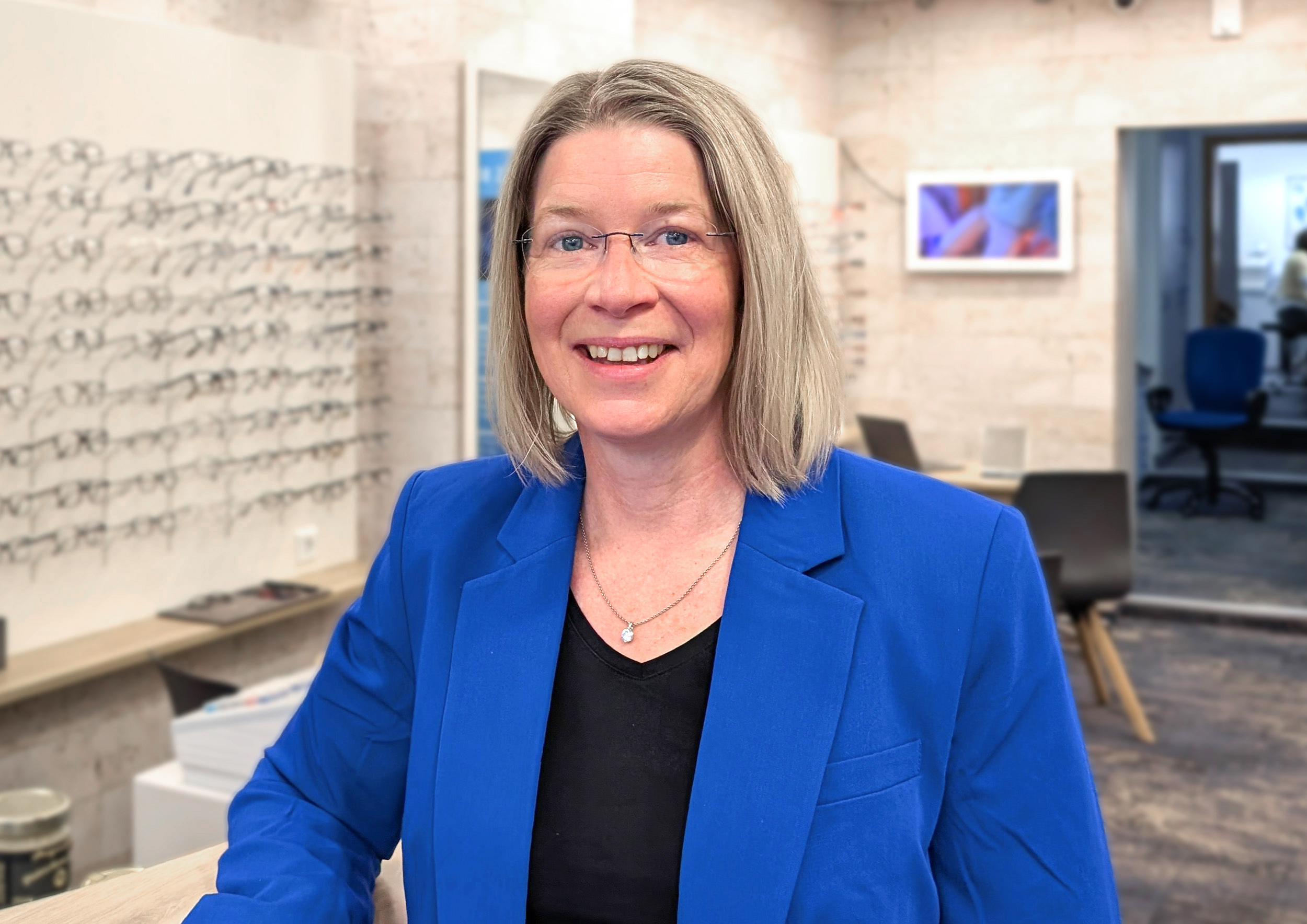 Rosemarie Wachter koordiniert die Abläufe zwischen Optik und Verwaltung. Sie überwacht Zahlungsvorgänge und die Buchführung. In der Freizeit betreut sie die Bücherei in Gläserzell. Sie liest sehr gerne und geht tanzen bei den Tanzfreunden Fulda.